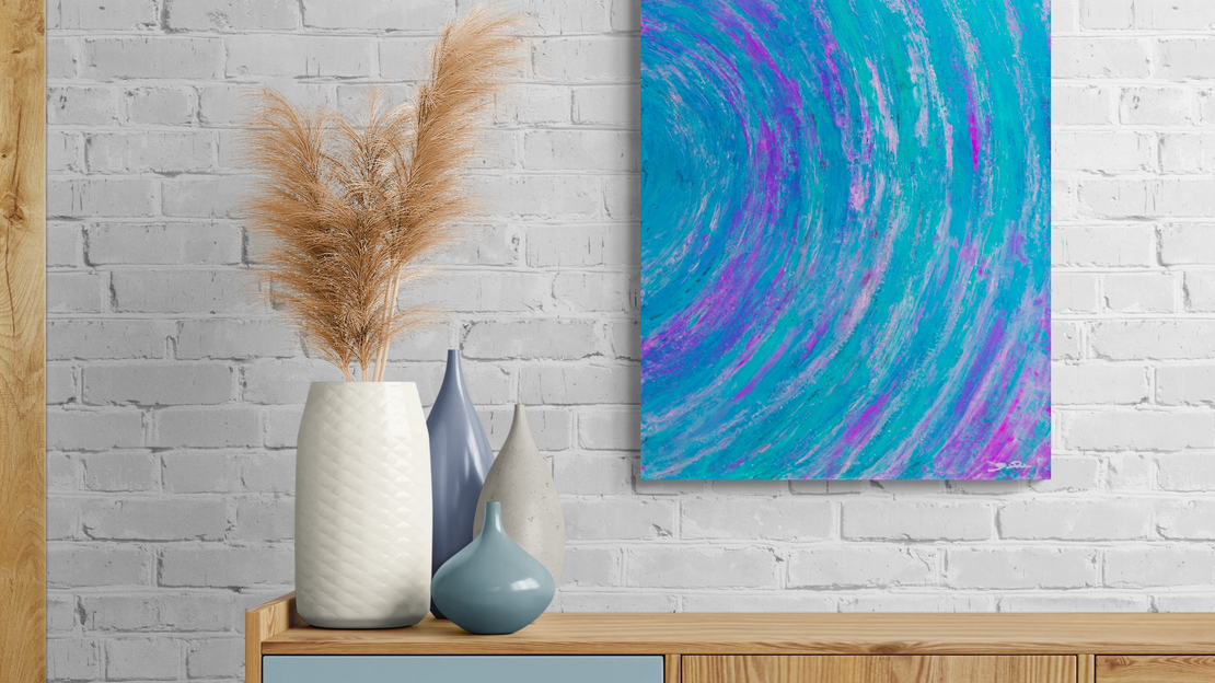 Immerse yourself in the vibrant energy of "Currents of Thought," a captivating original acrylic painting on canvas. This striking piece blends dynamic colors, fluid motion, and abstract elements, evoking a sense of movement, emotion, and introspection. The rich layering of purples, blues, yellows, and pinks creates a visually stimulating composition that draws the viewer into a world of imagination and thought.