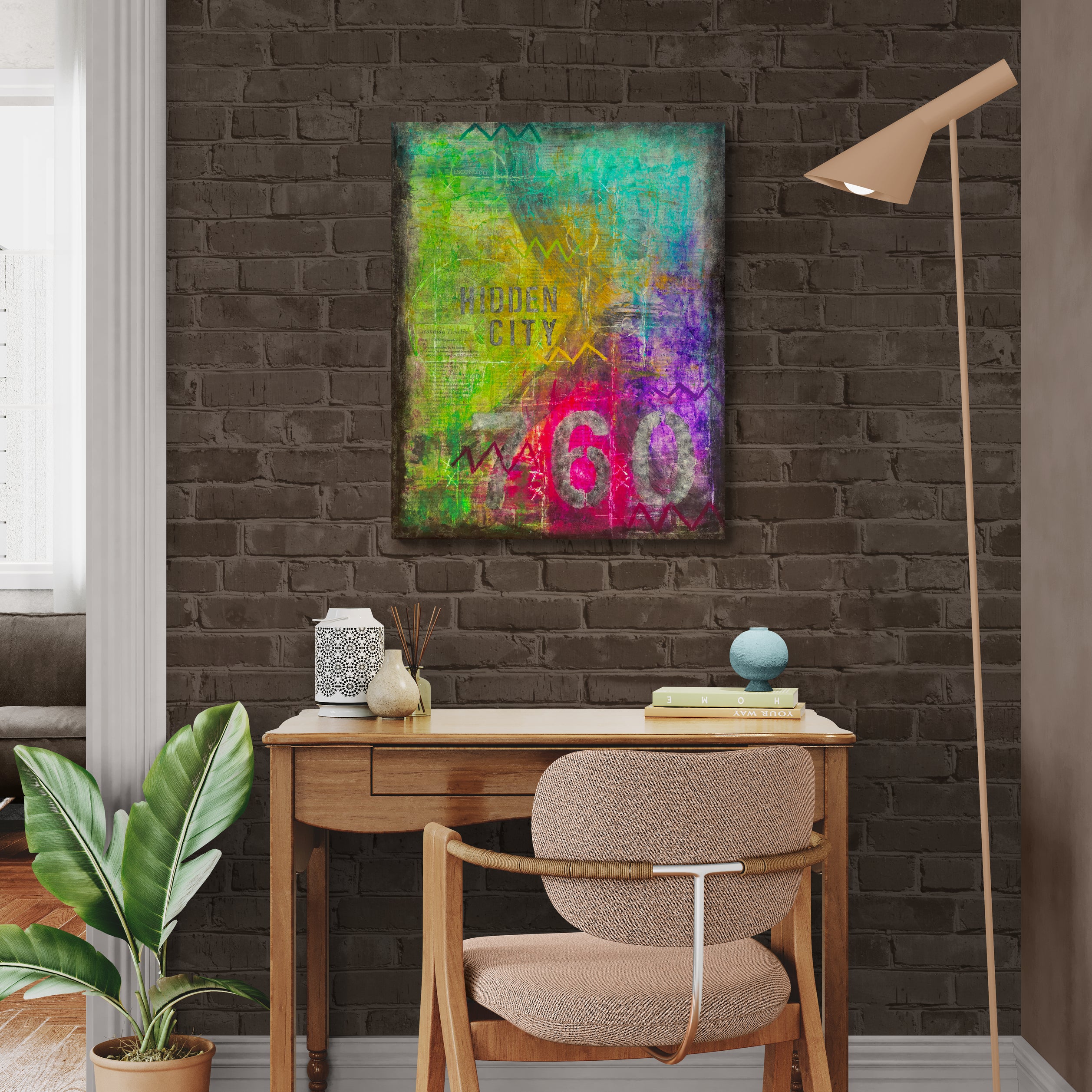 Crafted by hand using professional-grade paints and premium canvas, Hidden City isn't simply seen—it’s experienced. Look closely and you'll find subtle echoes of local history surfacing from beneath—like memories resurfacing through time and space.